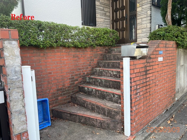 外階段に手摺を設置しました。支柱箇所はダイヤモンドコアで