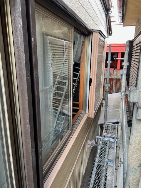 2026 年 2 月 9 日公開 住宅雨戸敷居・戸袋改修 川崎市宮前区の築40年以上前の住宅の2階引違サッシの外側に付いている雨戸の木製敷居と戸袋妻板を交換して塗装を行いました。常に雨ざらしの状態なので木部もメンテナンスは必要となります。
