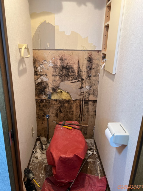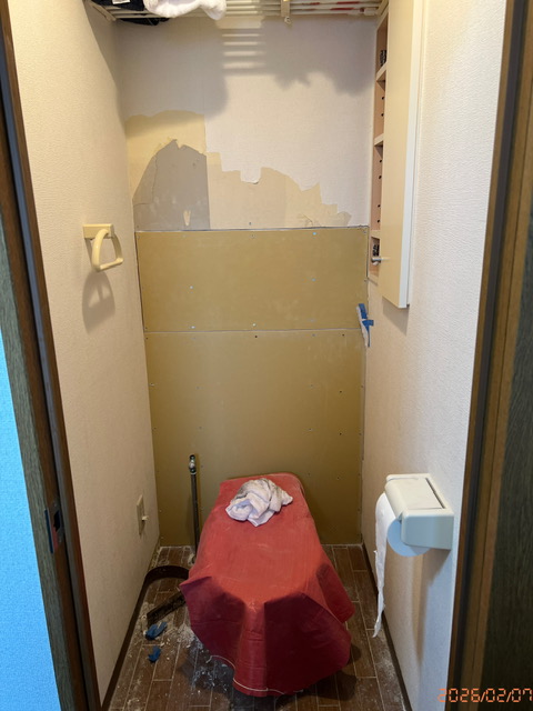 2026 年 2 月 9 日公開 漏水による改修工事 共同住宅の床下配管より水漏れが有りトイレの壁の石膏ボードにまで吸い上げての被害が有りました。居住中ではありますが、便器のタンクを外し石膏ボードを一部交換してクロス施工まで1日で完了しました。